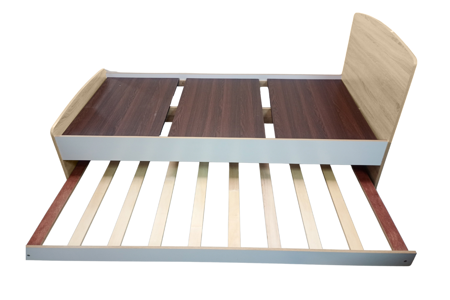 RYDEN Single Trundle Bed offers a smart space-saving solution for modern homes. Featuring a smooth-rolling trundle bed that easily slides out to accommodate guests, it combines practicality with clean, contemporary style. The two-tone oak and white finish adds warmth and elegance, making it a perfect fit for bedrooms, apartments, or kids’ rooms where space and comfort matter most.