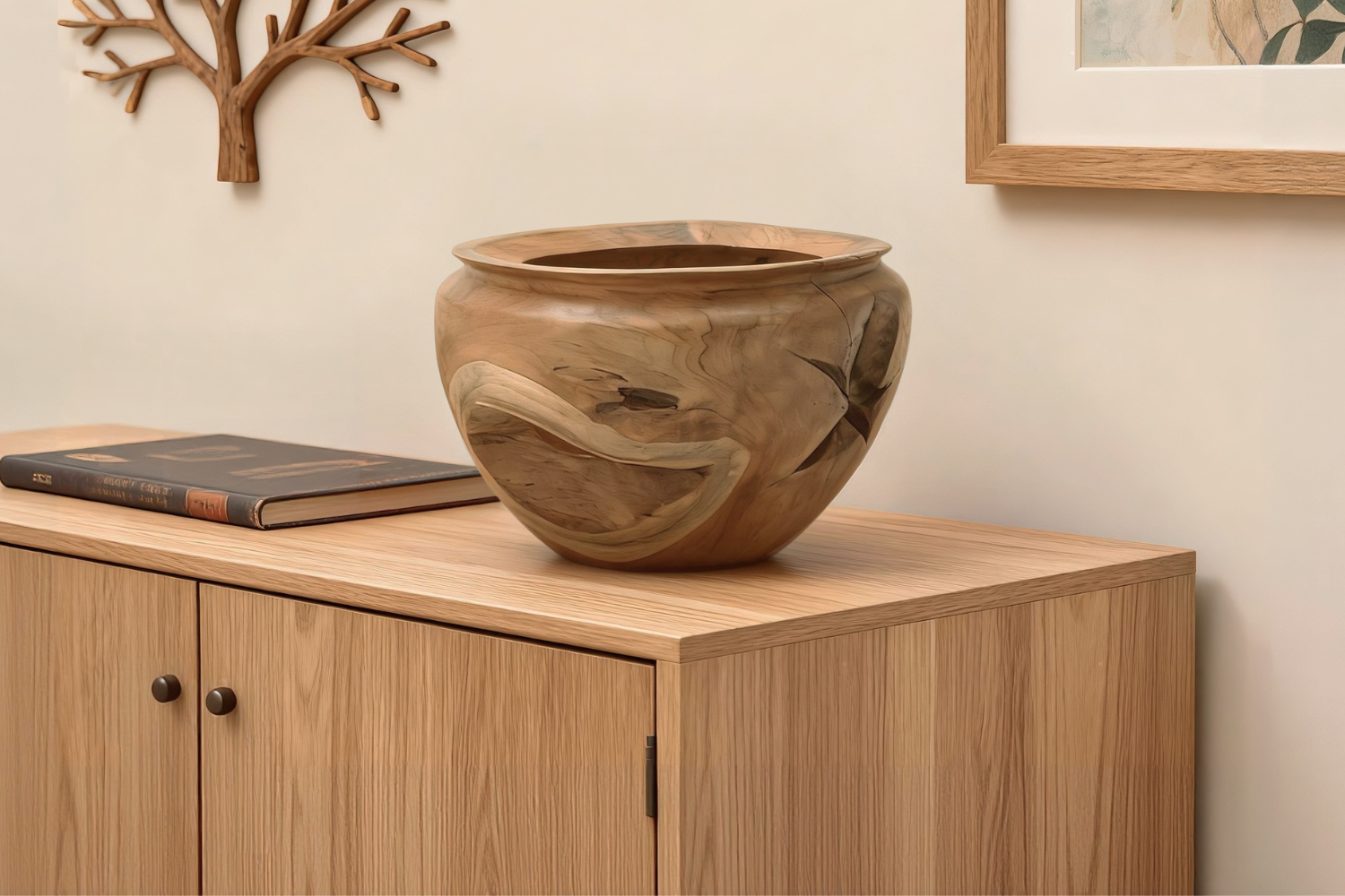 Add a touch of rustic elegance to your home with this Teak Wood Handmade Decorative Bowl. Crafted from solid teak root, this free-form bowl showcases the natural, live edges that highlight the unique beauty and organic form of the wood. Perfect for use as a decorative container or fruit bowl, its striking design makes it a standout piece in any living room, dining room, or entryway. Each bowl is handcrafted, ensuring no two pieces are exactly alike.