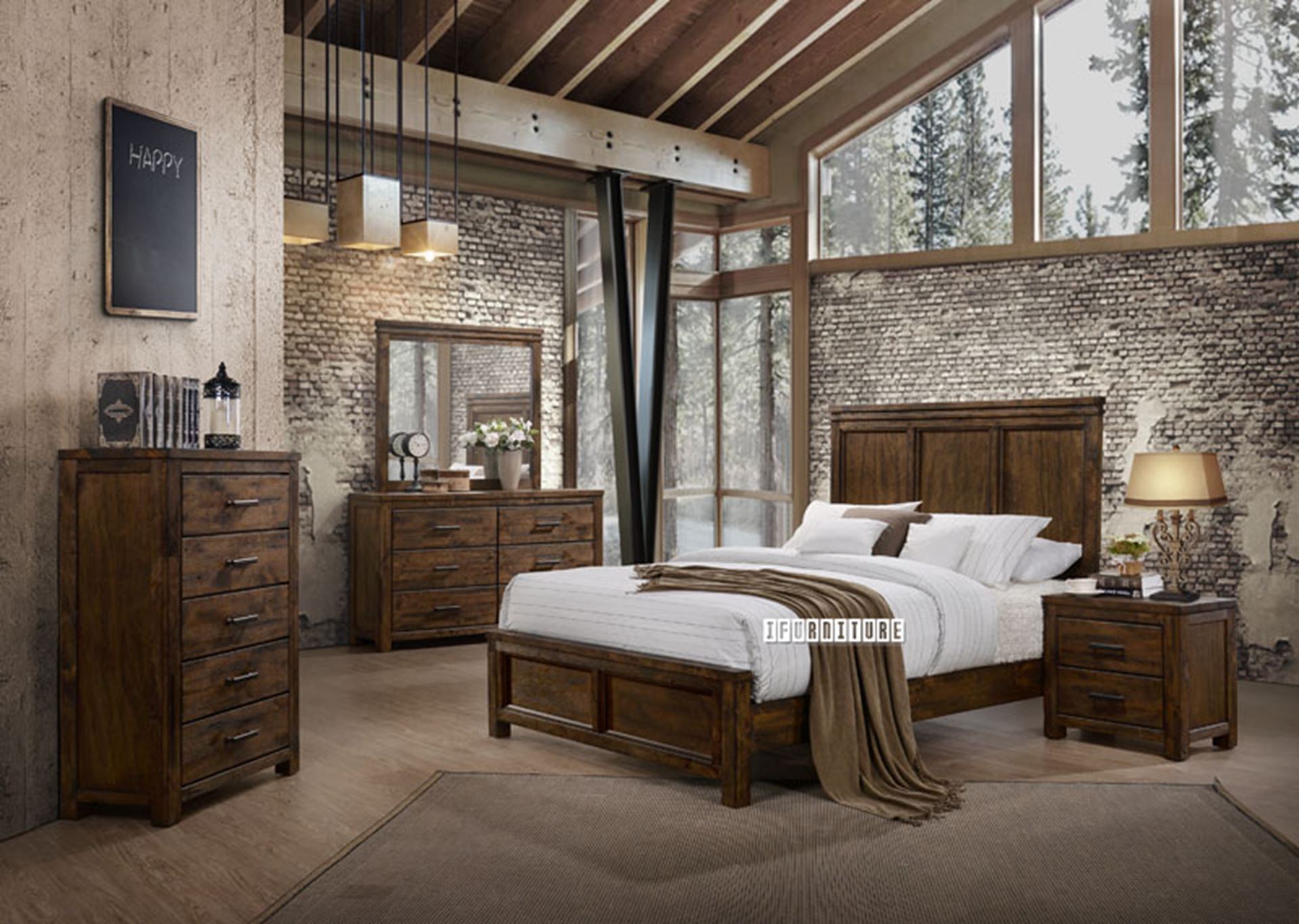 Upgrade your bedroom with this coordinated charcoal grey furniture set, featuring a platform storage bedframe, bedside table, tallboy, and dresser with mirror. Clean lines, wood grain texture, and smart storage make it stylish and practical. The bed’s underframe drawers offer useful storage, perfect for extra bedding or seasonal essentials. Whether you're furnishing a master suite or guest room, this stylish and functional set brings both harmony and utility to your bedroom.