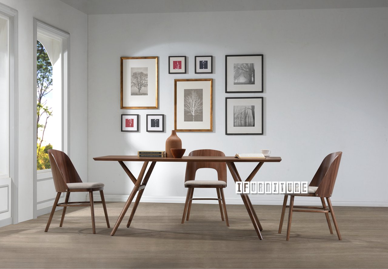 The Ashford table and chair comes in a delicious, walnut tint, with obvious woodgrain features. It can be teamed with Ashford chairs as a 7- Piece set. The table has round legs are of solid wood and have a memorable supportive design. The style is clean and classical.