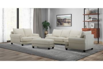 Its solid wood frame ensures long-lasting support, while the foam and velvet fiber filling offer a plush, cozy seating experience that’s perfect for both relaxation and entertaining. The sleek fabric upholstery in elegant white brings a modern touch to any décor, and with versatile seating options, it easily adapts to any room size or design