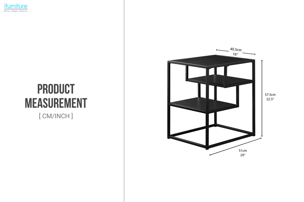The ADAM Side Table offers a sleek and contemporary design, featuring a sturdy combination of engineered wood and metal. With multiple open shelves, this table is perfect for adding style and storage space to any room.