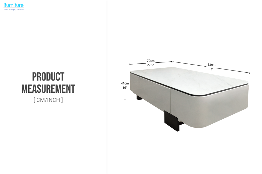 ARIANNA 130 Engineered Stone Top Coffee Table with 2-Drawer