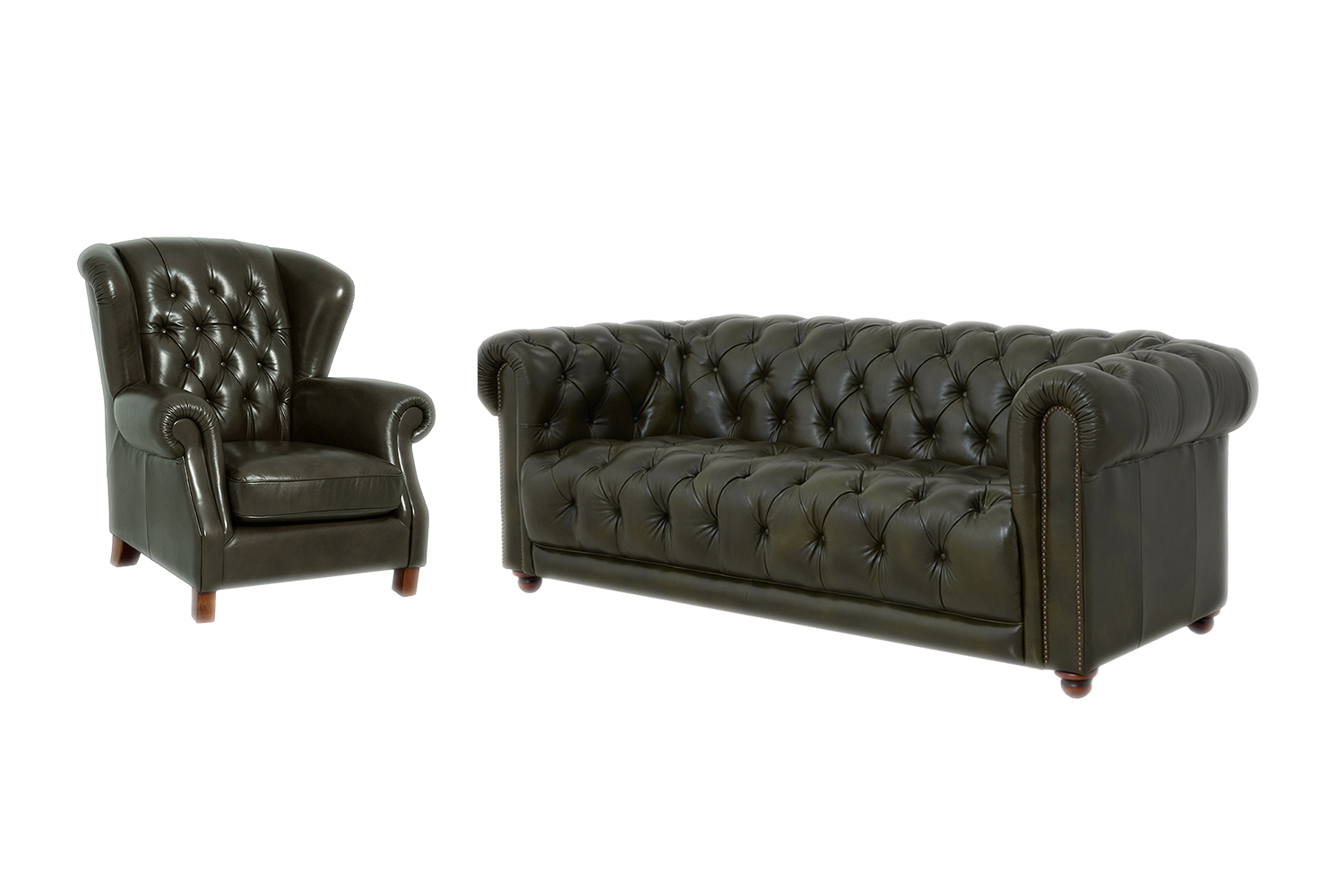BAMBURGH 100% Genuine Leather Chesterfield Sofa Range - 3 Seater