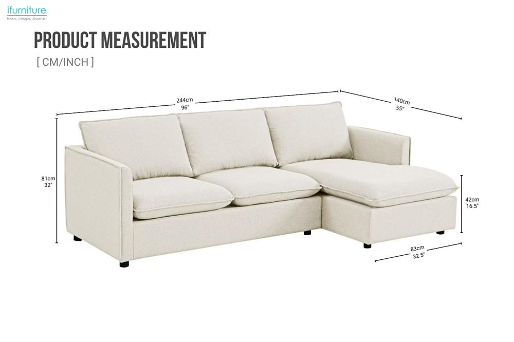 BENDON Fabric Sectional Sofa (Off White) - Chaise Facing Right