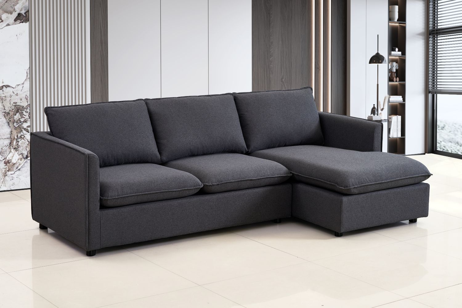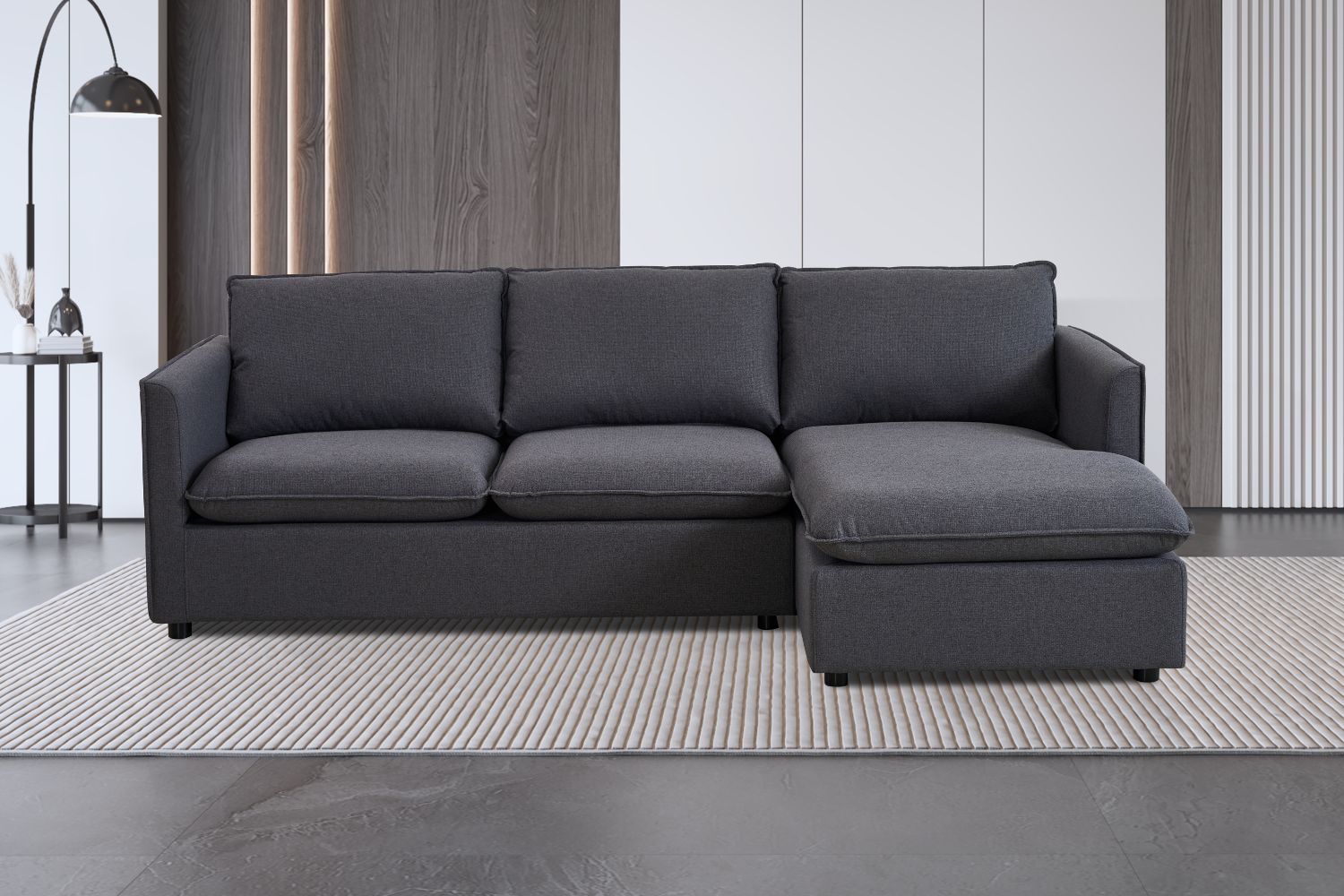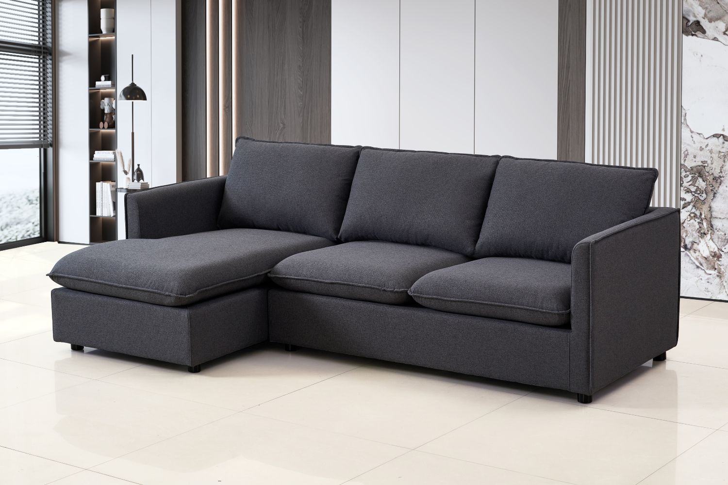BENDON Fabric Sectional Sofa (Dark Grey) - Chaise Facing Right
