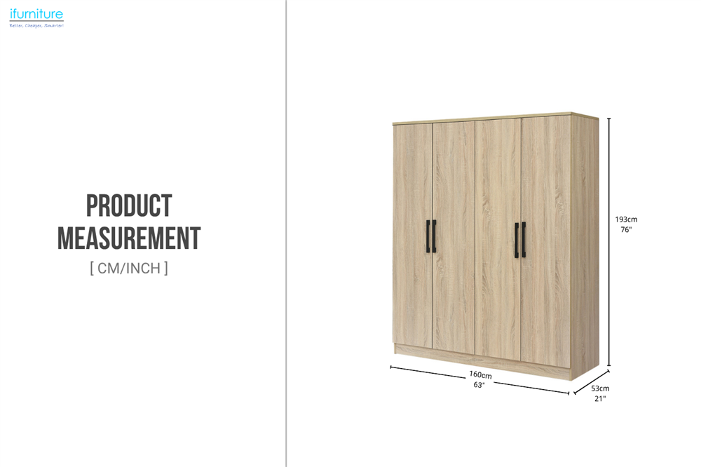 • Spacious 4-Door Design: Offers ample room for clothing, bedding, and accessories, making it ideal for shared or master bedrooms.