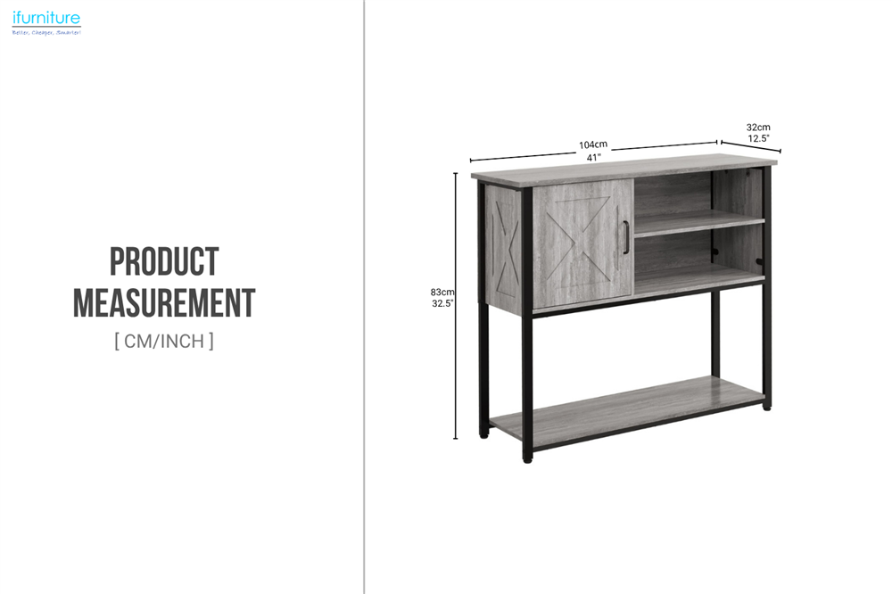 • Classic Rustic Style: Designed with a grey wood grain finish and black metal frame, this cabinet adds a classic rustic charm that blends seamlessly with both modern and traditional interiors.