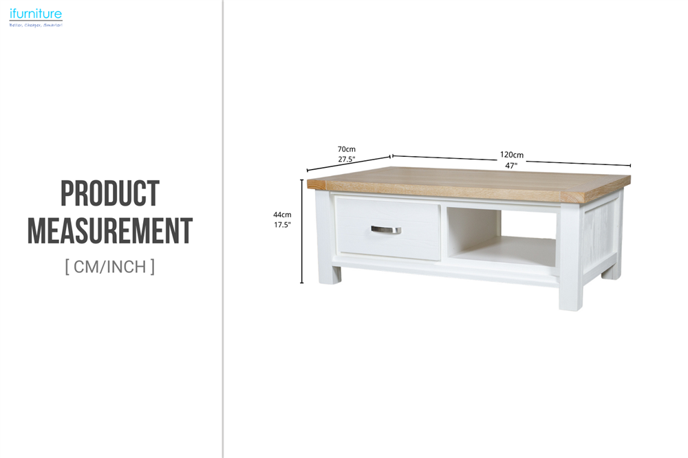 Designed for everyday living, this coffee table features a New Zealand pine tabletop with oak veneer finish and a modern two-tone design. A smooth-opening drawer and open side compartment provide practical storage for essentials, making it a clean, functional centerpiece for contemporary living spaces.