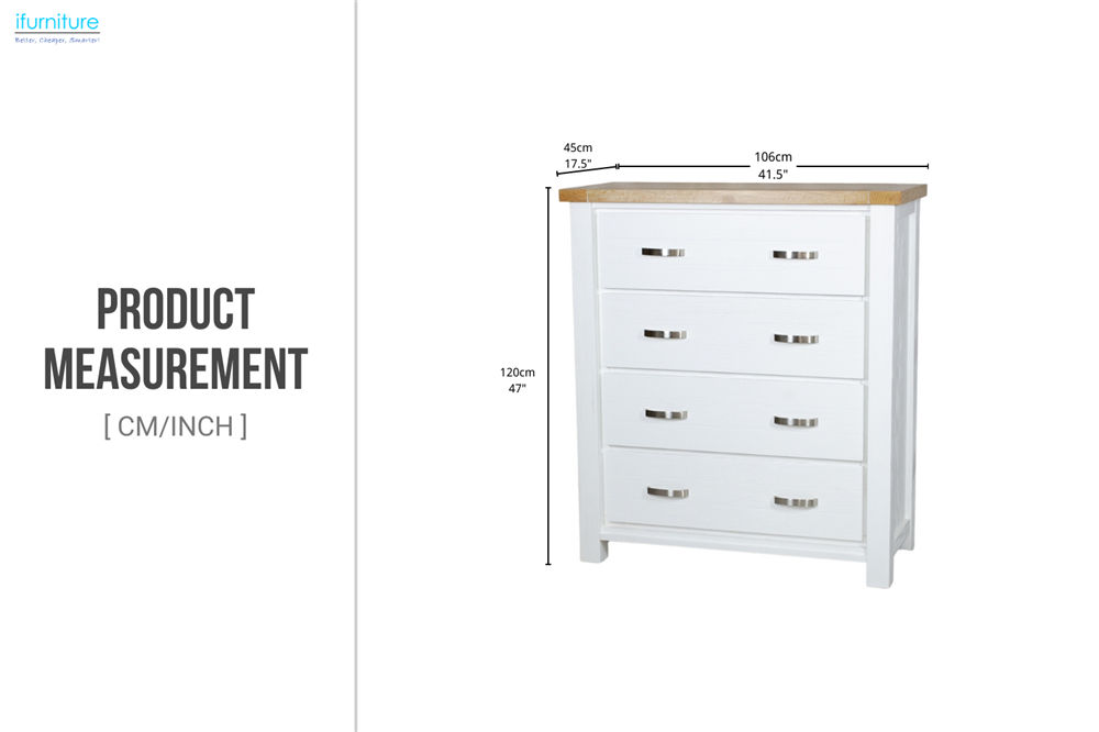 • Spacious Storage: Features four spacious drawers that provide ample space for organizing clothes, accessories, and other personal items.