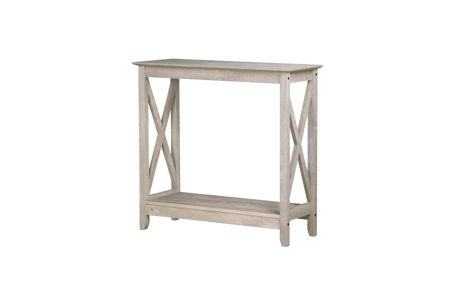 This console table features cross-braced side panels for added stability and a classic farmhouse look. A full-length lower open shelf offers practical storage for baskets, décor, or everyday essentials. Wall attachment hardware is included for enhanced safety, while the versatile design makes it ideal for entryways, hallways, living rooms, or placed behind a sofa.