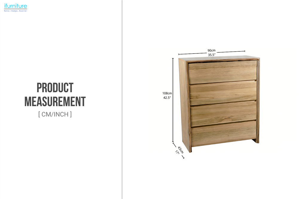 This tallboy, crafted from solid chestnut wood veneer, features naturally flowing grain patterns and warm tones. With four spacious drawers for organizing clothes and essentials, it keeps your space neat. The modern rustic style adds warmth and character, making it a charming addition to any room.