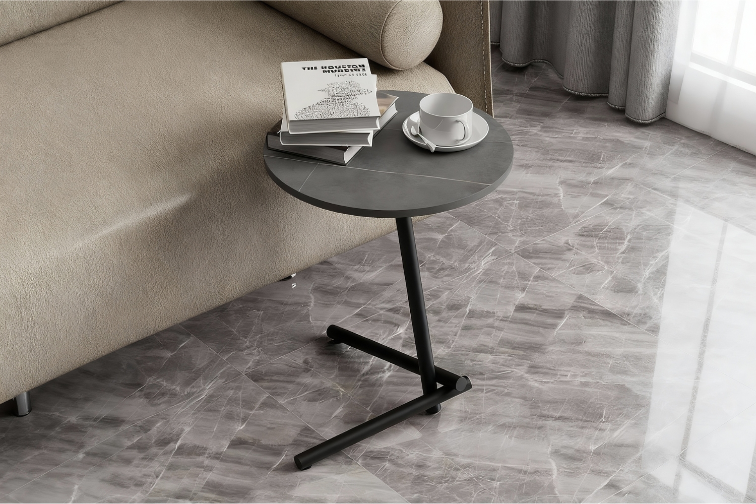 The CARA 45 Sintered Stone Side Table is a stylish and versatile piece featuring a round grey marble top that exudes sophistication. Its sleek black base and metal legs add a contemporary flair, creating a visually pleasing contrast. With a compact size, this table is perfect for versatile placement in various settings, offering flexibility in decorating your space. The durable construction of the table strikes a harmonious balance between style and resilience, ensuring it withstands the test of time. Crafted from sintered stone, the table's top not only enhances its aesthetic appeal but also adds to its robustness, making it suitable for everyday use. The round design further enhances its aesthetic appeal, creating a well-rounded and pleasing visual presence. In essence, the CARA 45 Sintered Stone Side Table is a durable and stylish addition to any room, seamlessly blending form and function.