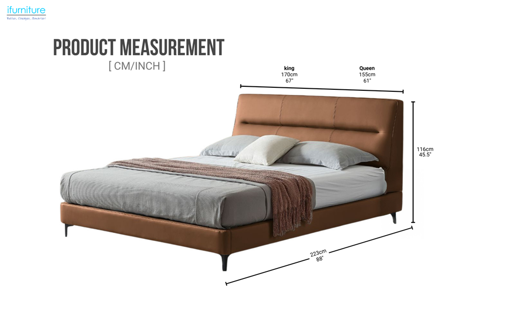 Introducing the CUBA Bed Frame, now available in both Queen and King sizes, featuring an enchanting Brown finish. Elevate your bedroom with this refined piece that showcases a genuine leather headboard with a plush foam-filled design. The enduring strength comes from the durable solid pine slats, complemented by contemporary metal hardware for a modern touch. Tailored for both Queen and King sizes, this bed frame effortlessly combines versatility with sophisticated aesthetics.