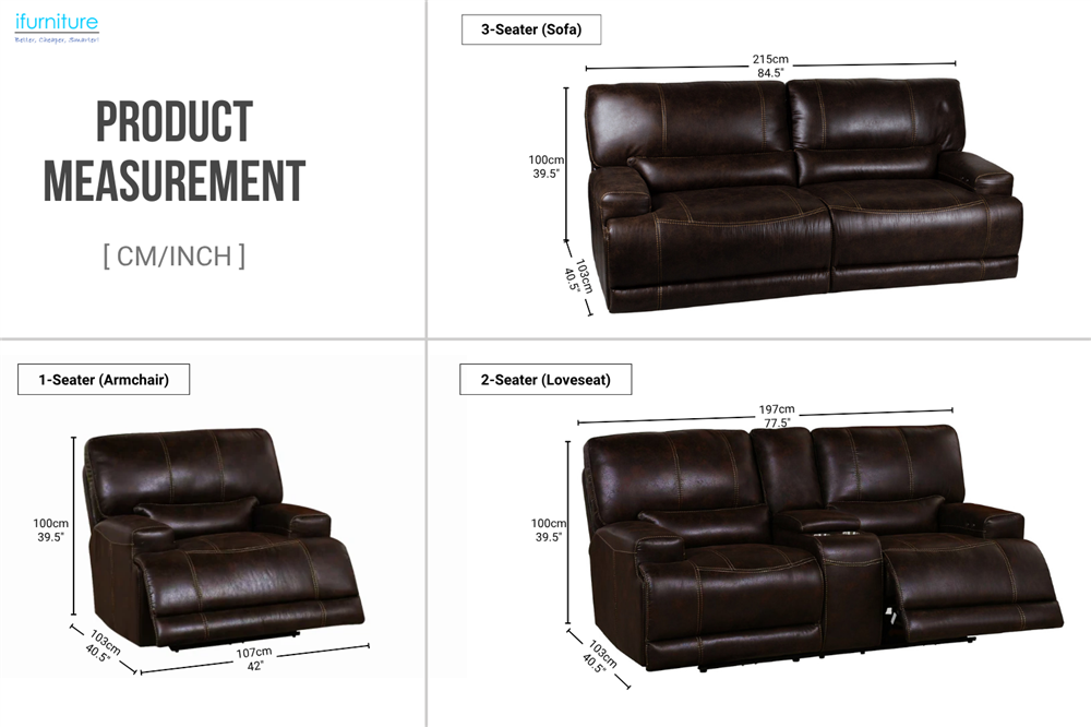 Relax in style with the DAWSON Power Reclining Sofa. Featuring high-quality foil-printed fabric that mimics the elegance of leather. Besides, it features a handy console between the 2-seater with cup holders and storage for convenience. It’s perfect for both lounging and entertaining in your living room, home theatre, or media space. The reclining mechanism allows for effortless relaxation, making this set the ideal choice for a modern, cosy living area.