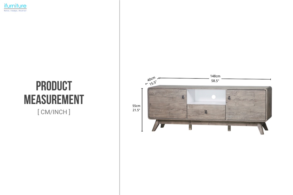 • Stylish Storage Configuration: Two enclosed side compartments and a central drawer provide organised storage for media accessories and essentials.