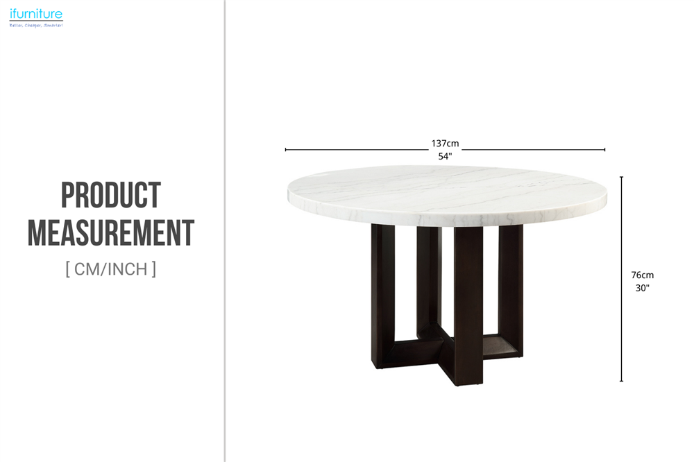 • Elegant & Modern Design: This dining table showcases a round natural marble top with unique veining, paired with a sleek espresso-finished cross-leg base, creating a perfect blend of luxury and contemporary style.