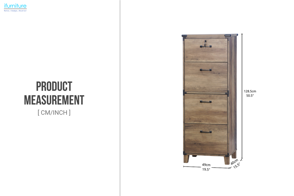 The ELBIN 4-Drawer Tallboy combines industrial style and practical storage. With four spacious drawers, it offers ample room for organising documents, office supplies, and personal items. Designed with a sleek engineered wood finish, this piece brings a touch of sophistication to your office or living space.
