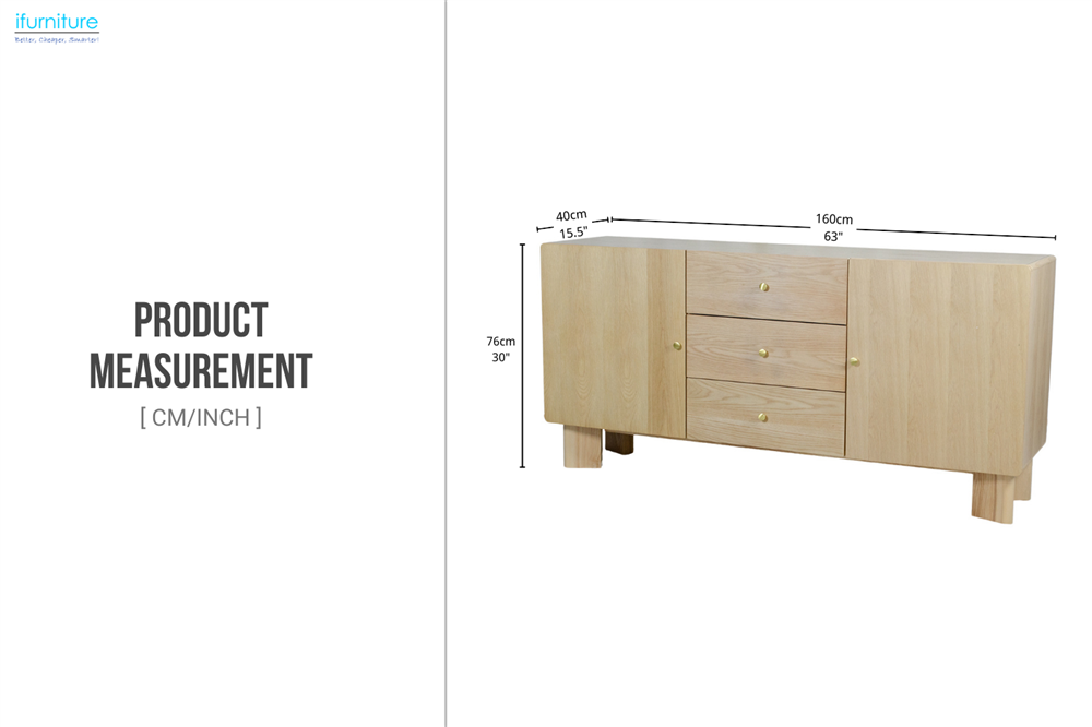 This 2-door buffet offers a balanced blend of durability, storage, and modern design. It features three central drawers and two side cabinets with shelves, providing versatile space for tableware and everyday items. Supported by wide, angled solid legs and finished in natural oak tones, it brings a clean, contemporary look that suits a range of interior styles.