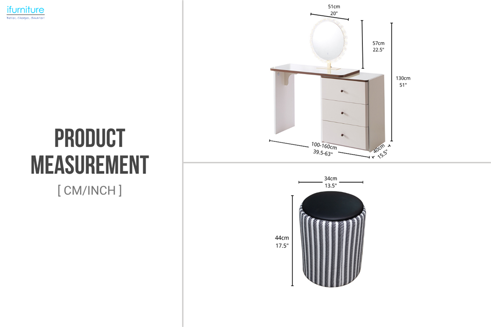 • Space-Saving Design: The expandable vanity table offers ample storage in a compact form.