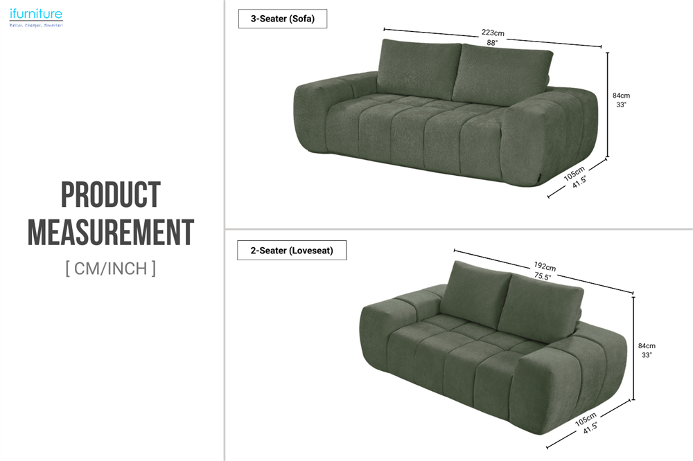 • 3-Seater & 2-Seater Options: Available in both 3-seater and 2-seater configurations, allowing flexible pairing to suit different room sizes and layouts.