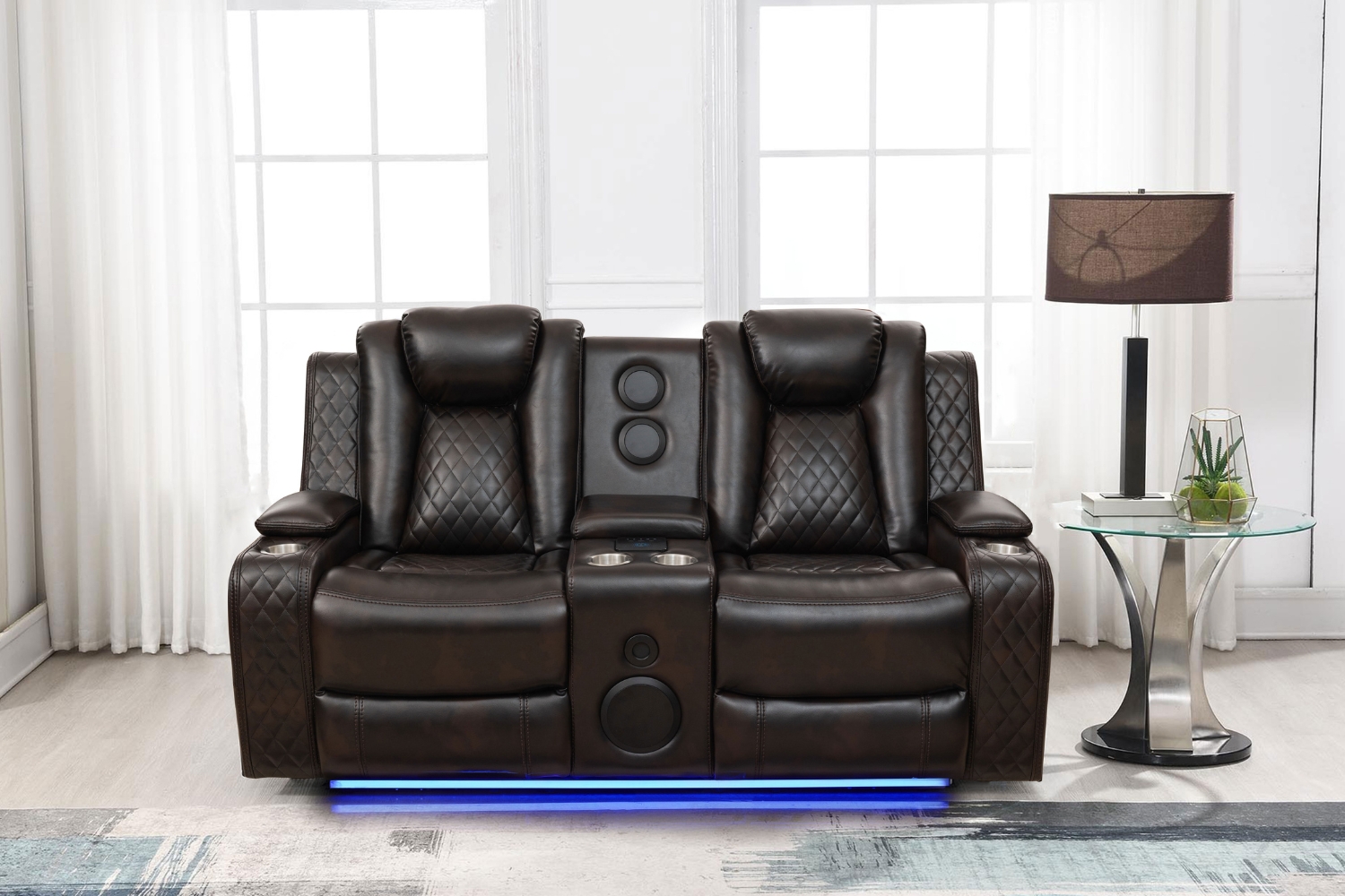 FAIRWAY Air Leather Dual Motor Reclining Sofa Range (Brown) - 2 Seat with Console & Bluetooth Speaker & Wireless Charging (2RRC)
