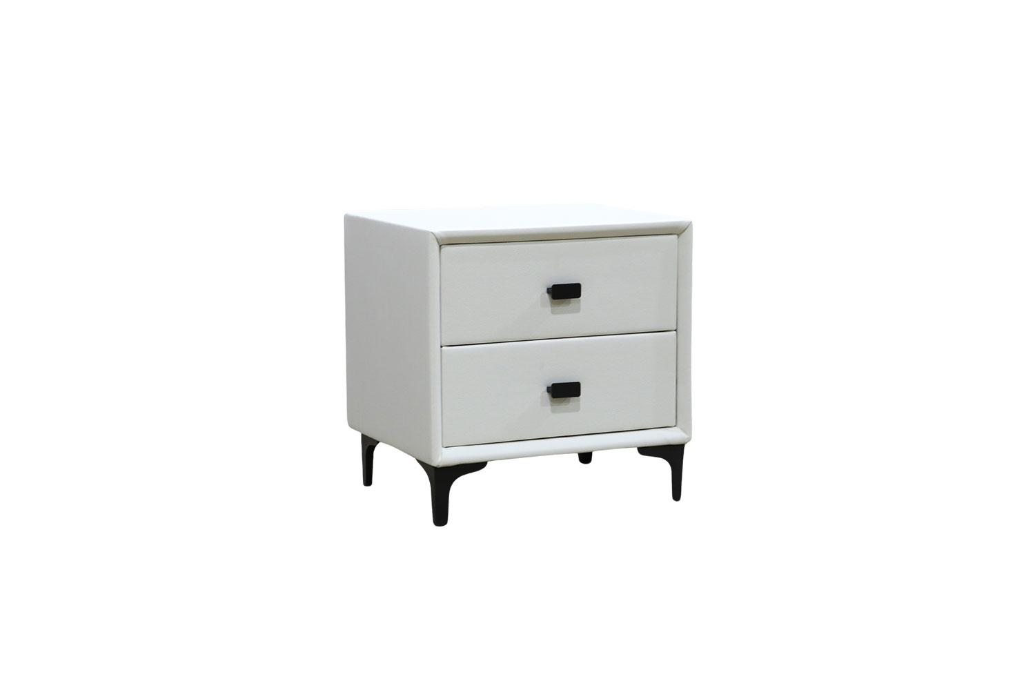 Introducing the ALANYA 2-Drawer Bedside Table in White, a stylish addition to your bedroom ensemble. Draped in elegant leather , this bedside table emanates sophistication. With a durable Enginereed wood frame and accented by sturdy metal hardware, it harmonizes timeless aesthetics with practicality. The two drawers provide convenient storage for your essentials, offering both functionality and opulence. Elevate your bedroom decor with the ALANYA Bedside Table, where the refined White color adds a touch of luxury to your space. Experience the seamless blend of style and utility with this exquisite piece of furniture. Indulge in the perfect marriage of elegance and practical design for your bedside needs.