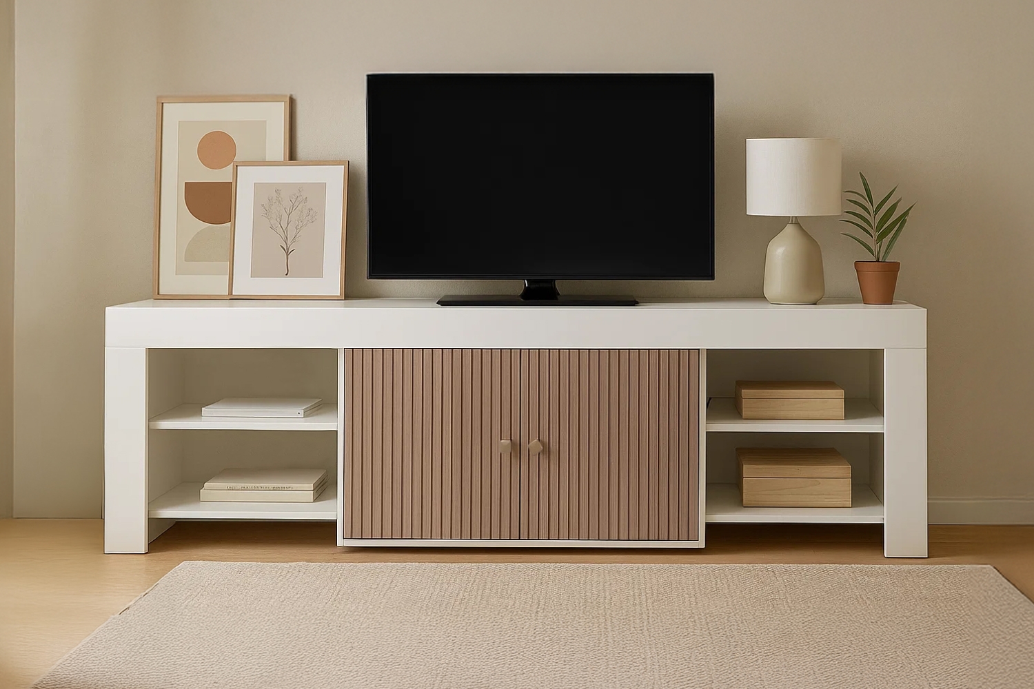 Hidden Centre Storage: Keep remotes, games, and cables out of sight.