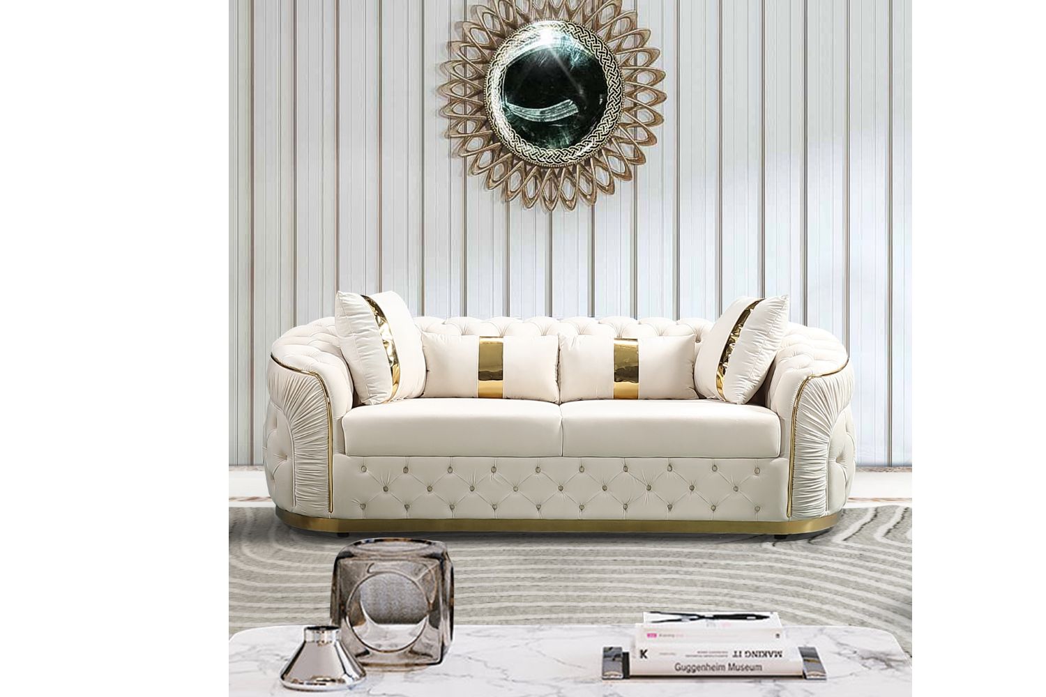 - Classic-meets-modern aesthetic: Combines a timeless chesterfield design with a modern golden frame for a stylish and contemporary look.