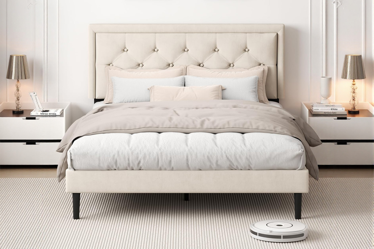 - Elegant Tufted Headboard: Showcases a classic button-tufted design that adds a touch of sophistication and modern charm to any bedroom.
