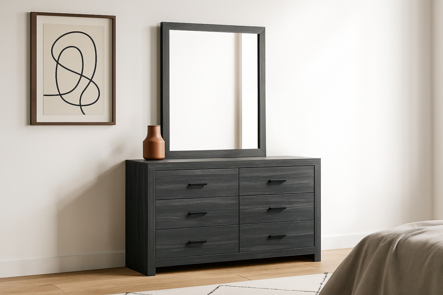 Designed for compact spaces that need maximum storage, the HAIDEN 5-Drawer Tallboy combines vertical efficiency with a sleek, modern aesthetic. Finished in a charcoal grey with subtle wood grain texture, it brings understated elegance to any contemporary bedroom. The tall, narrow silhouette makes it ideal for tight corners or limited wall space, while five generously sized drawers keep clothing and essentials neatly tucked away. Each drawer features a recessed handle, maintaining the unit’s smooth profile and minimalist appeal.