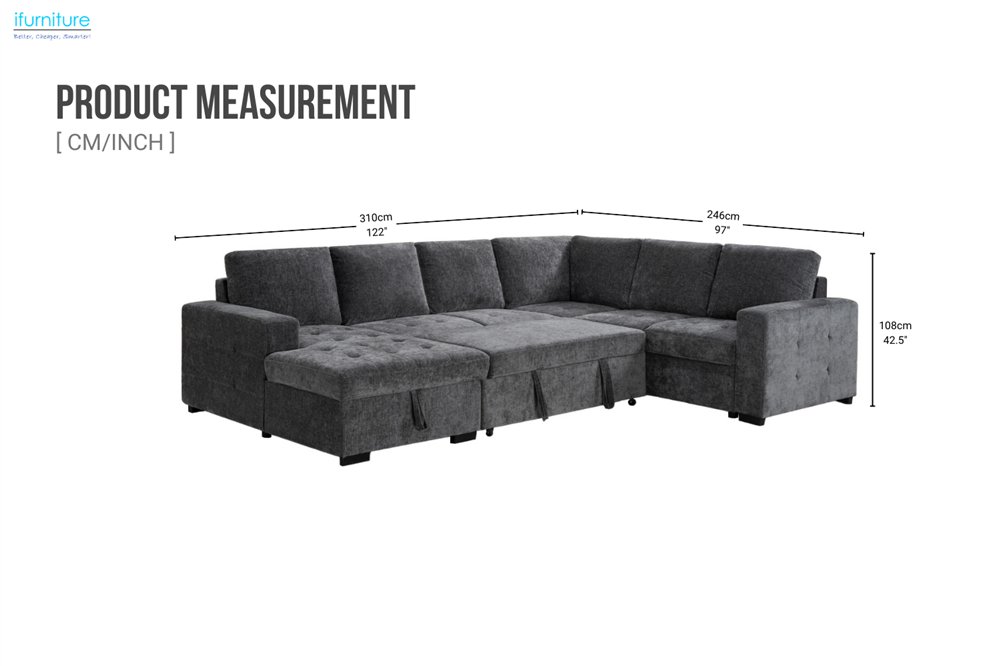 Spacious U-Shape Lounge Layout: Generous wrap-around seating creates a cosy “conversation pit” feel—perfect for families, movie nights, and entertaining.