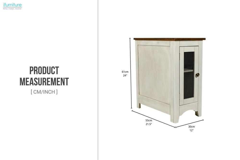 This stylish side cabinet features a rich espresso top and an antique white finish for a two-tone look. The metal mesh door opens to reveal a fixed interior shelf, perfect for organizing and storing items. Classic round metal pull handles add a touch of elegance and ensure easy access to the storage space.