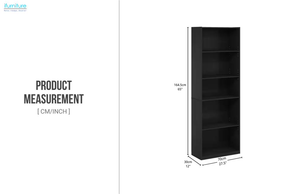 • 5-Tier Storage: Five open shelves provide ample space for books, decor, and other items, helping to keep your space organised and tidy.