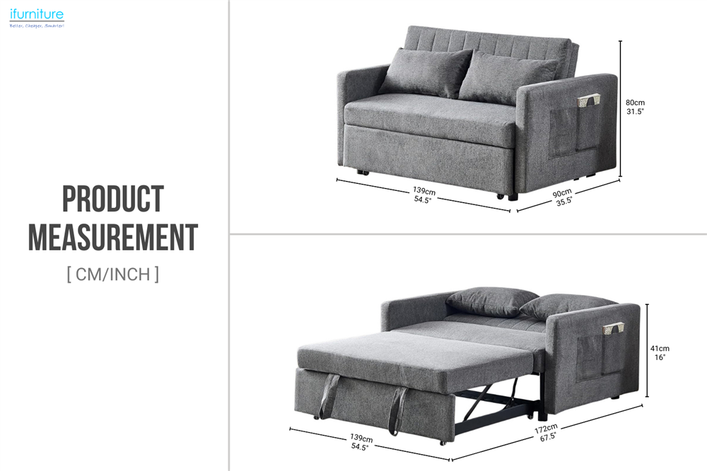 • Durable Metal Support Frame: Reinforced metal frame ensures stability and long-term durability in both sofa and bed configurations.