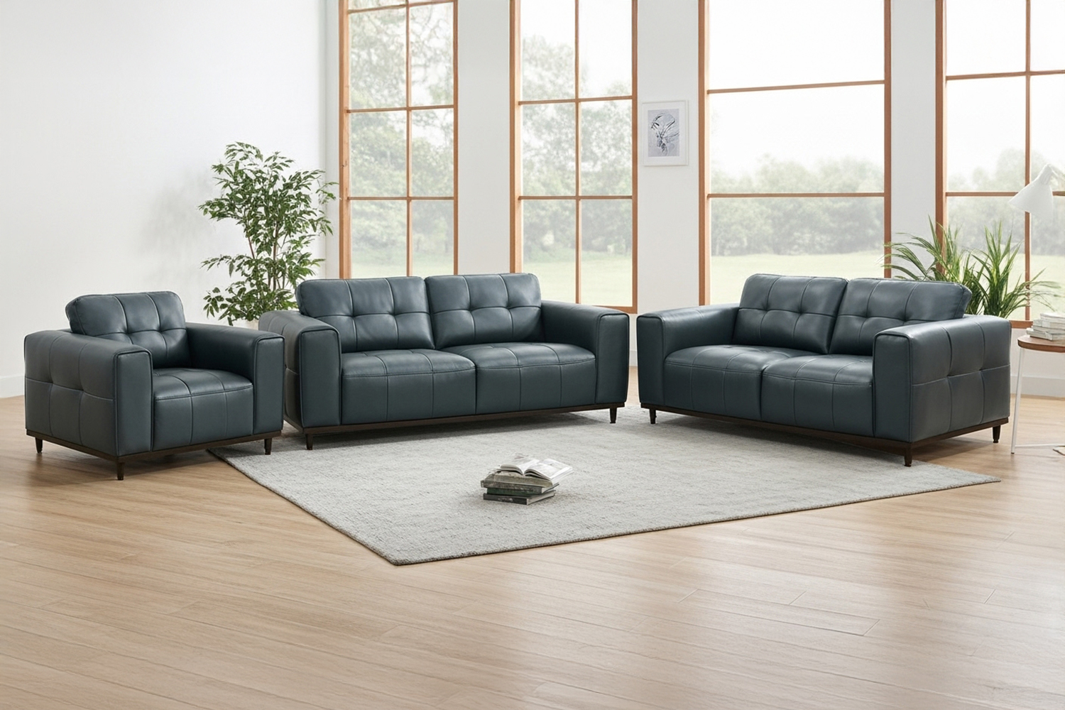 100% Full Top Grain Leather, High-density Foam, Pine Wood Frame, Rubber Wood Legs