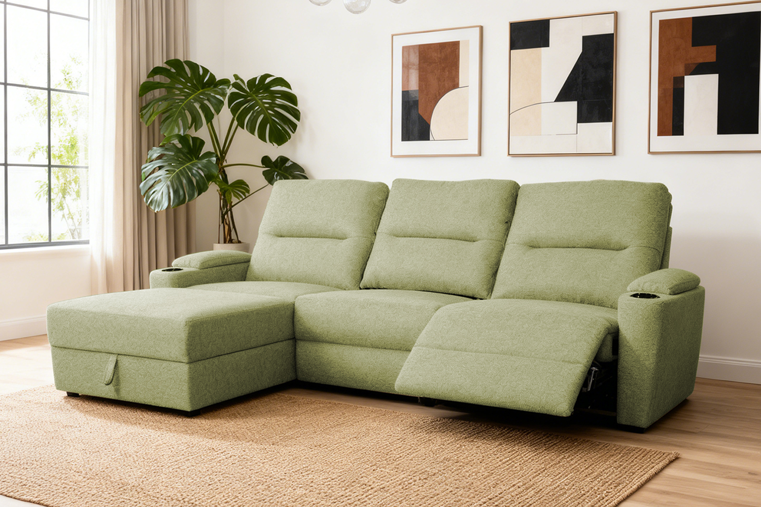 The KIMBERLY Power Reclining Sectional Sofa offers an exquisite combination of comfort, style, and functionality. Crafted with breathable fabric, engineered wood, and soft foam, this sectional ensures ultimate relaxation and durability. Featuring a power reclining mechanism for effortless lounging and a convenient drop-down console with cupholders, this sofa makes the perfect addition to any modern living room.