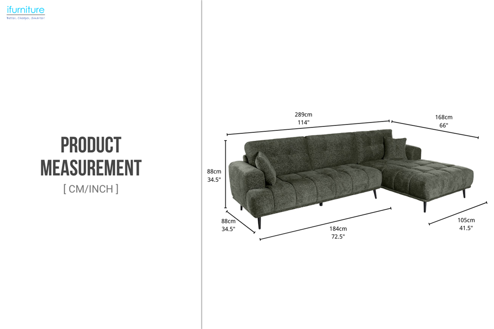 Experience the perfect blend of style and comfort with the LAWTON Fabric Sectional Sofa. Its supportive, plush cushions, upholstered in a stunning forest green fabric, bring both luxury and relaxation into your home. Finished with sleek metal legs and two cozy throw cushions, this sofa is a stylish, durable addition to any space.