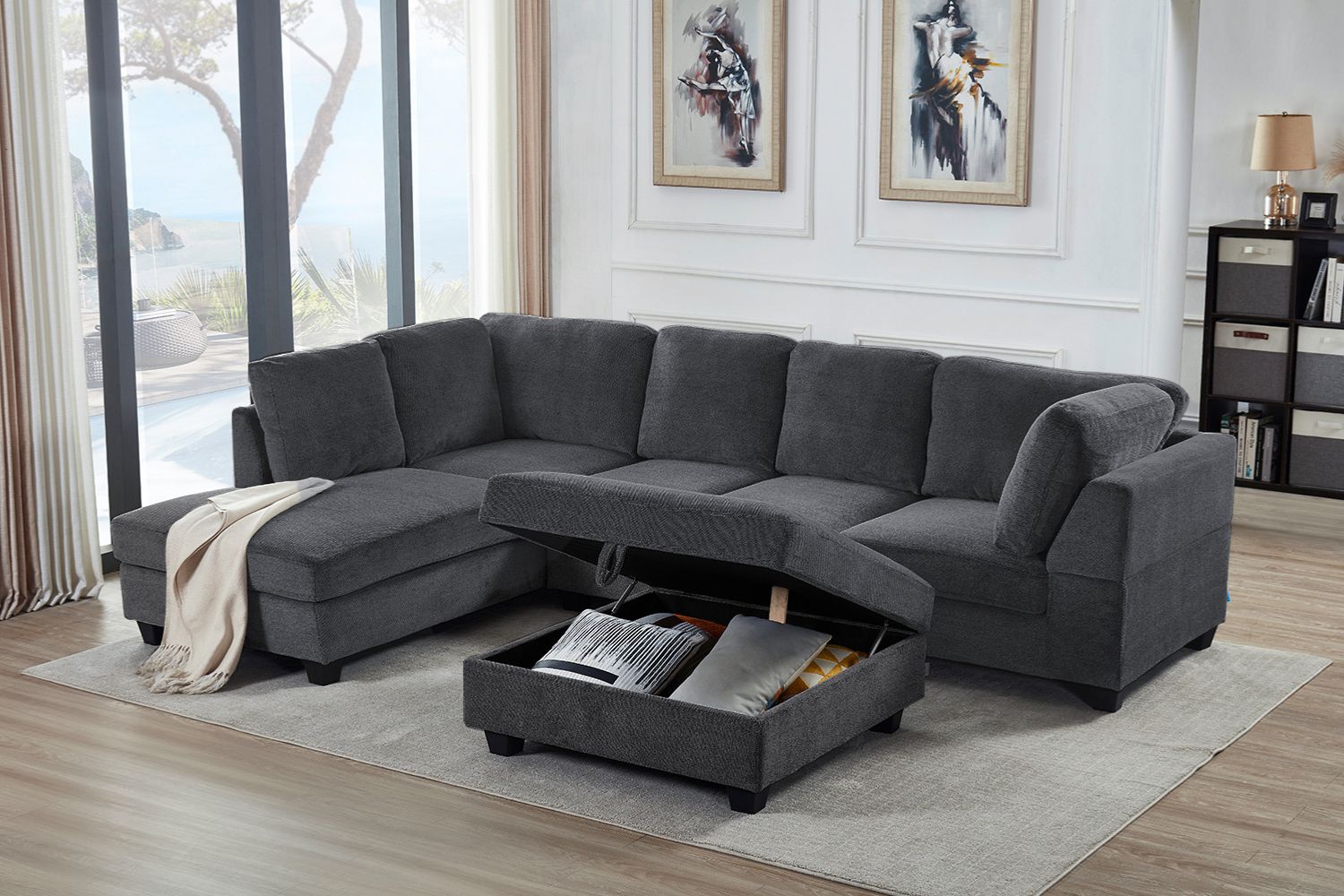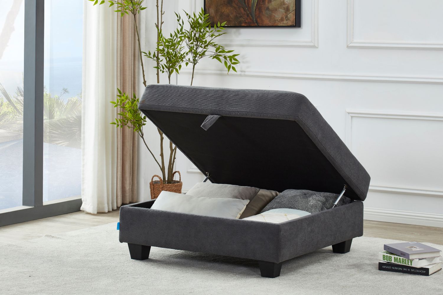LIBERTY Premium Sectional Sofa (Dark Grey) - Chaise Facing Right with Storage Ottoman
