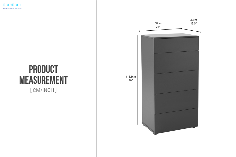• Sleek and Modern Design: This 5-drawer chest blends minimalist design with a matte grey finish, offering both style and functionality—an ideal addition to any home.