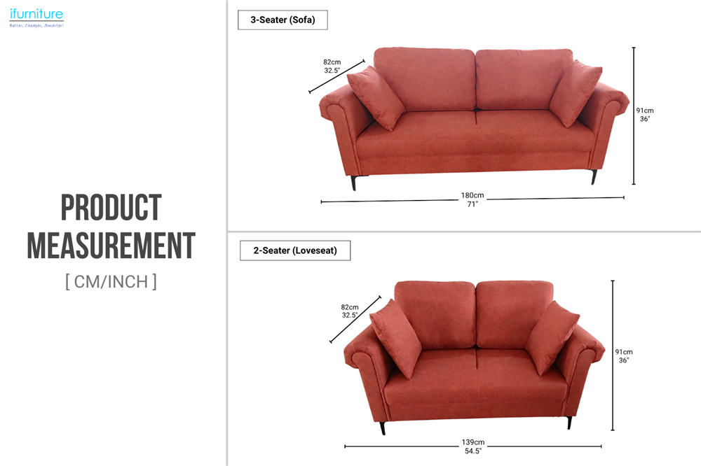 3 Seater: 180 (width), 82 (depth), 91 (height)