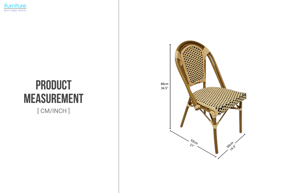 • Classic Parisian Café Style: Inspired by Parisian café chairs, featuring a graceful curved back and woven rattan design that adds timeless charm to any dining setting.