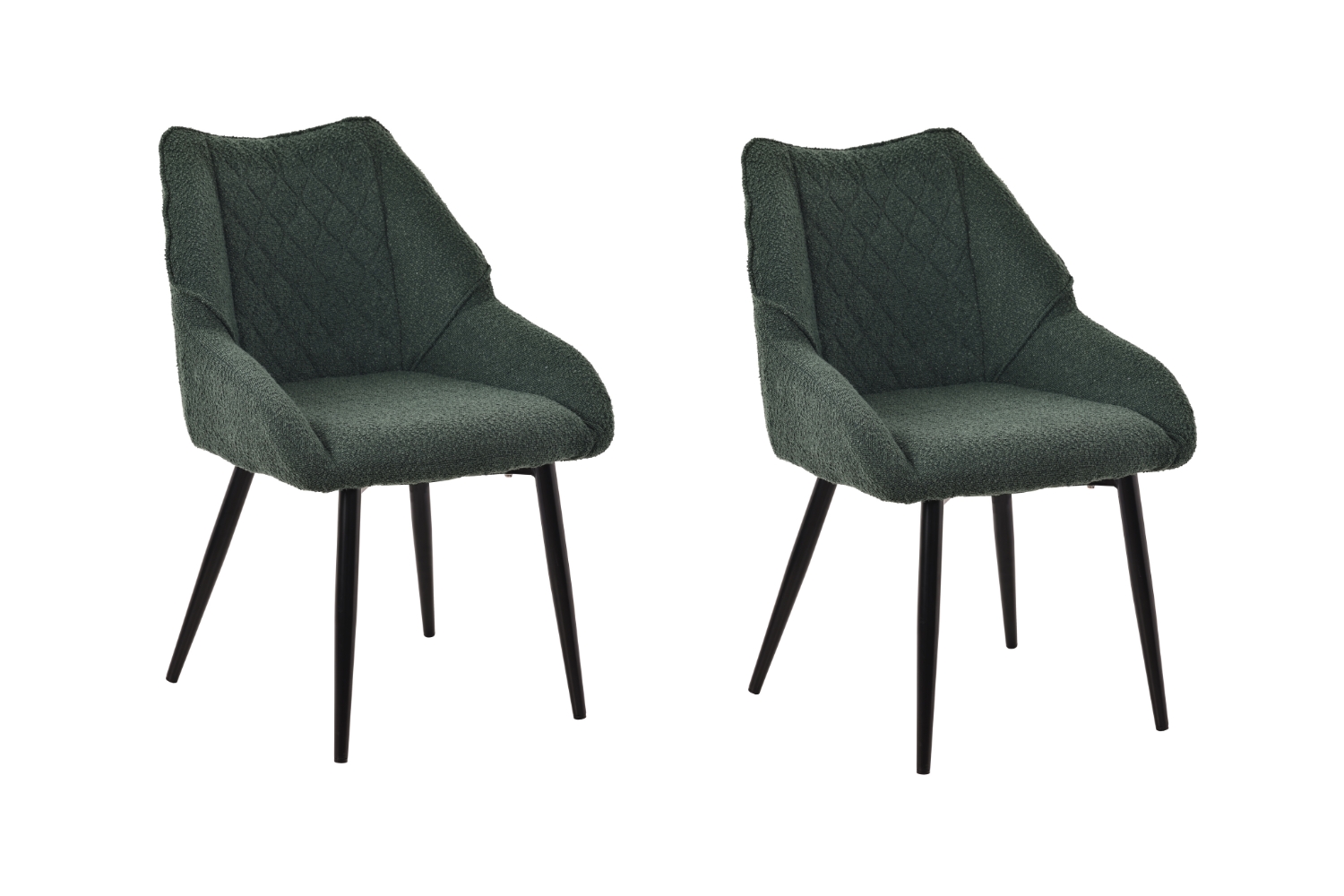Upholstered in soft, textured fabric, this dining chair adds warmth and visual depth. The diamond-tufted, wraparound back offers comfortable support, while sturdy metal legs provide stability. Its clean, contemporary design suits modern dining spaces and cafés.