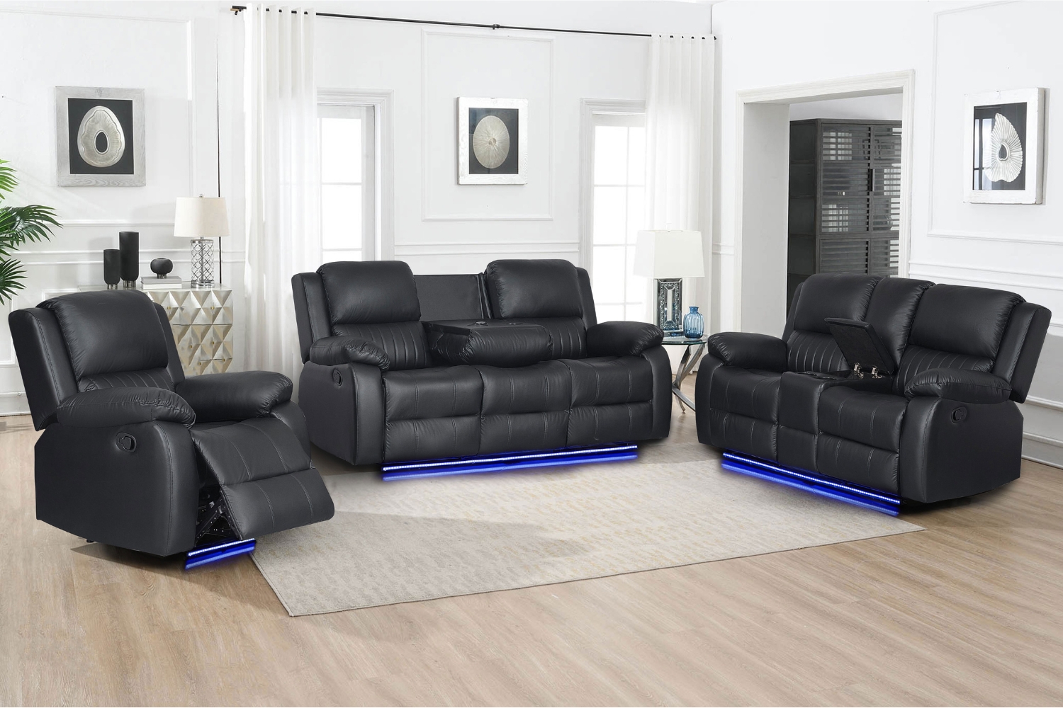 MARVIN Air Leather Manual Reclining Sofa Range with LED & Console & Wireless Charger (Black)