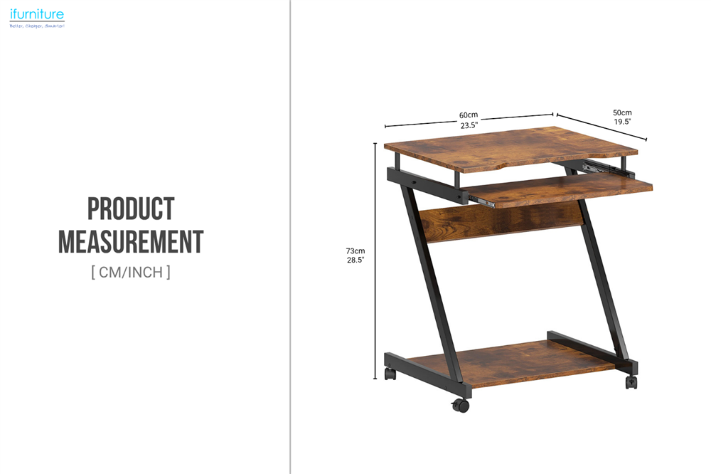 This Z-Shape Laptop Desk offers a perfect blend of stability and functionality in a sleek, space-saving design. Featuring a durable frame, a smooth pull-out keyboard tray, and a lower shelf for storage, it helps keep your workspace neat and efficient. With lockable wheels for flexible mobility, it’s an ideal choice for home offices, bedrooms, or study corners where space matters.