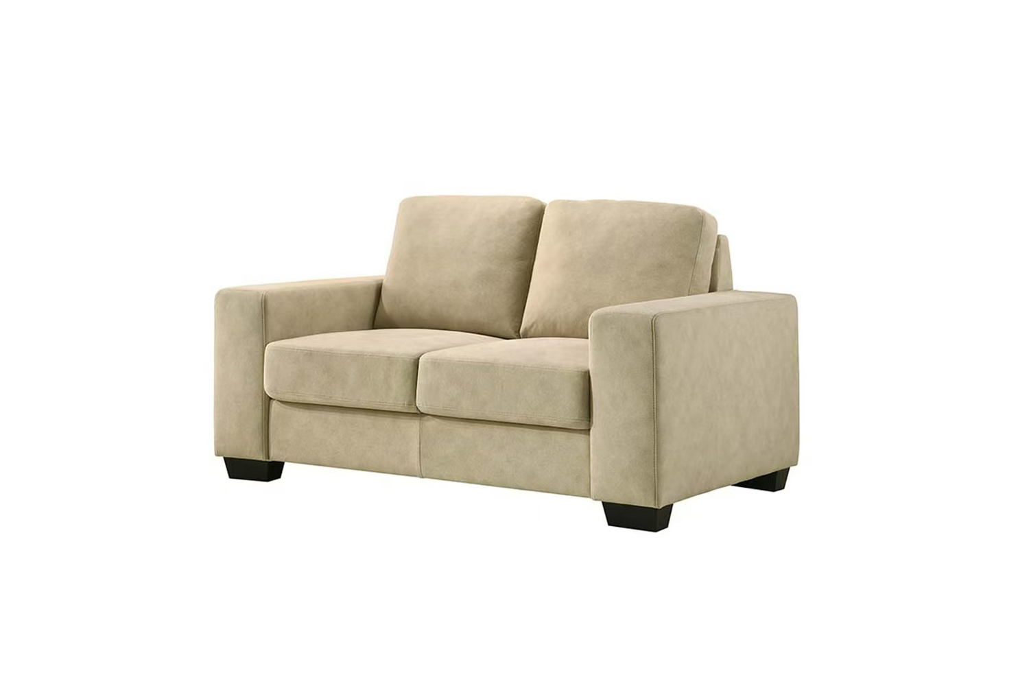 The Moda sofa features sleek square armrests and soft, durable beige fabric upholstery, offering a timeless design that complements various décor styles. Its thick, comfortable seat and back cushions provide excellent support for extended lounging, with options that suit different space needs, making it ideal for both home and office use.