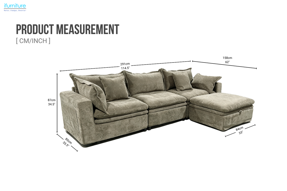 This modular sectional sofa combines feather and high-resilience foam filling to create a perfectly balanced seating experience—soft, plush, and supportive at the same time. Designed for modern living, it features spacious deep seating for ultimate relaxation, while the storage ottoman and side pockets keep everyday essentials neatly organized. Removable, washable covers make maintenance effortless, and the flexible modular design allows easy rearrangement to suit any space.