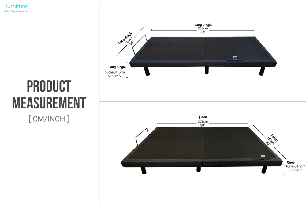 The MOTIONFLEXI PRO Electric Adjustable Bed Base delivers an advanced sleep experience with smooth back and leg elevation, zero-gravity positioning, and anti-snore functionality. Designed with a quiet motor system and a premium wireless remote, it features one-touch presets, child lock safety, under-bed lighting, and height-adjustable legs. Built with a strong steel frame and zero-ground compatibility, this bed base offers superior comfort, modern functionality, and customizable support.