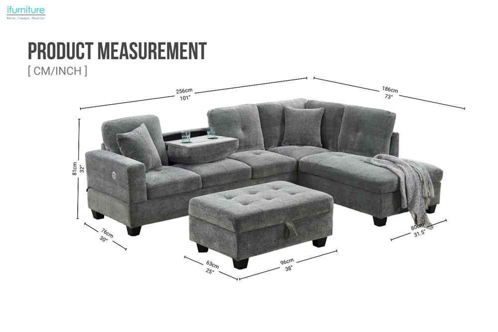 Upgrade your space with the NEBULA sectional sofa. Featuring a moveable ottoman, drop-down console and USB port, it's perfect for gatherings. Choose from dark/misty grey upholstery and left/right chaise options for flexibility. With smooth fabric and small pillows, it's both comfortable and durable.