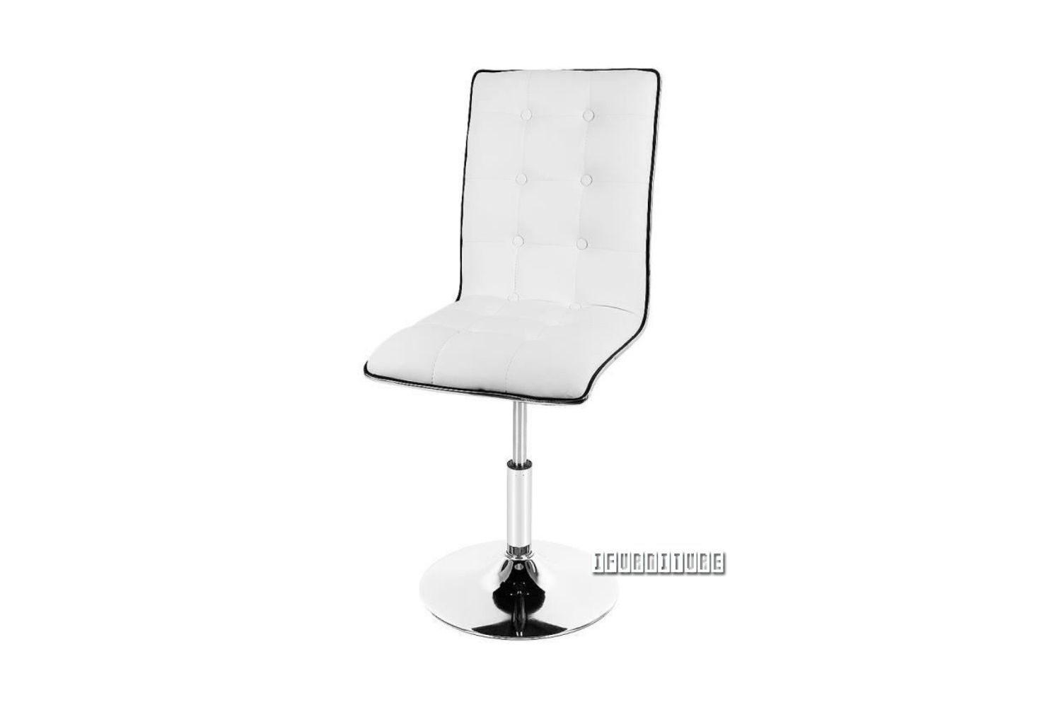 360-degree rotation, chrome base, plywood frame, adjustable height in white and dark grey colour.